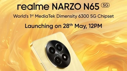 Realme is set to launch its latest smartphone, the Realme Narzo N65 5G, in India on May 28. The device features the Dimensity 6300 SoC, Android 14, and a 6.67-inch HD+ 120Hz display with Rainwater Smart Touch technology.
