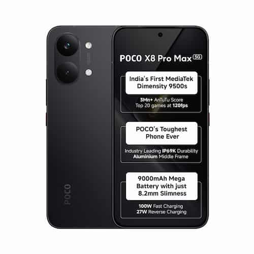 The POCO X8 Pro Max is built for extreme endurance and high-end gaming. It features a "minimalist" yet premium design with a high-strength metal frame and a unique racetrack-inspired camera module. The standout feature is its massive 9000mAh silicon-carbon battery, which POCO claims can provide up to 2 days of heavy usage. It is the global debut device for the MediaTek Dimensity 9500s chipset, aiming to provide flagship-level power for users who don't want to compromise on battery life or speed.