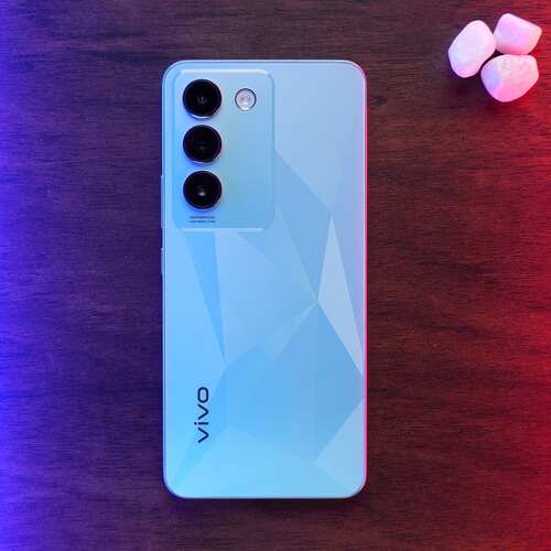 The Vivo T3 5G comes in two color options: Cosmic Blue and Crystal Flake. The back of the smartphone features a 2D Plastic.Vivo T3 5G display: